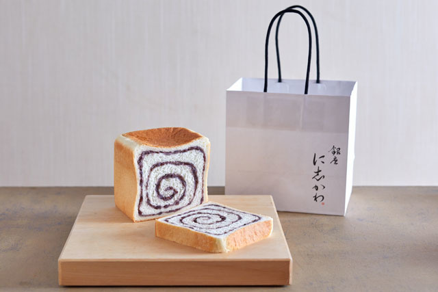国内生産量わずか2%の朱鞠小豆を渦状に高級食パンに巻き込み、